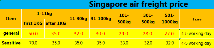新加坡和马来西亚(西马)空运价格 RMB(人民币)