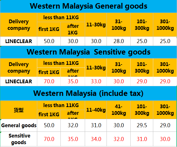 以上是普货价格,敏感货在普货价格上11KG以下+40/票,11KG以上+4/KG