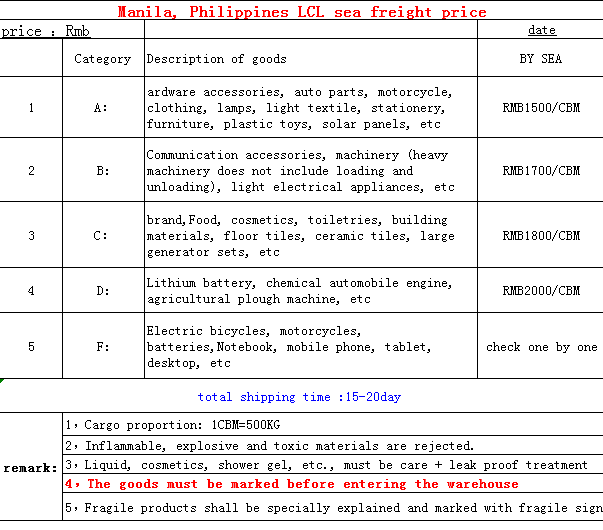 China to Manila, Philippines by sea door to door shipping service