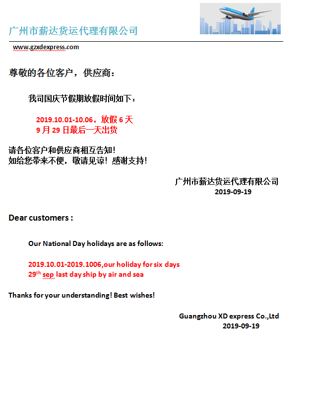 2019National Day Holiday Notice
